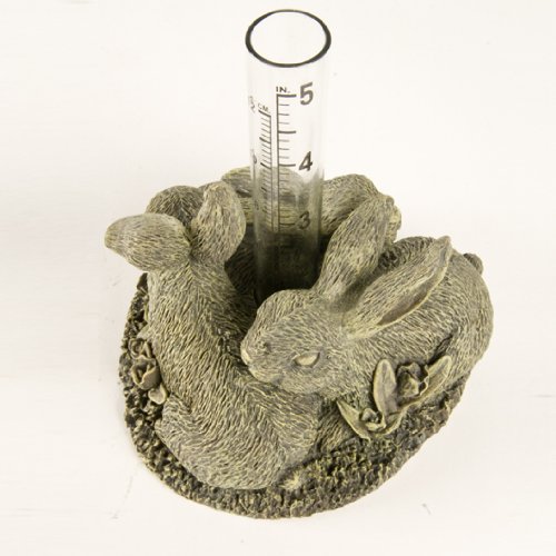 Resin bunnies circle a glass tube and show how much rain has fallen. Natural color.