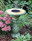 Have you ever wanted a fountain in a particular area, but the whole hassle of electric pumps scared you off? Maybe you wanted a birdbath too, but hated the idea of the constant refills. Now you can have both those yard accents in one fabulous solar powered birdbath fountain! No more cords, plug-ins, and worrying about running over something with the lawn mower. This remarkable piece uses a solar-powered pump to keep the water flowing, and a hidden reservoir to make sure water stays in it all the time. Polyresin. 20 x 20 x 27 inches.