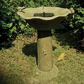 - Solar powered birdbath made of lightweight and maintenance free resin